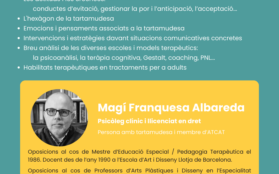 Al mes de febrer farem la nostra següent jornada del cicle de formacions en disfèmia. En aquesta ocasió, tornem a abordar la tartamudesa en l’adolescència. La formació anirà a càrrec de Clara Gutiérrez Barroso, logopeda especialista i amb gran experiència en tartamudesa. Es donaran les claus del tractament i teràpia en població adolescent, amb tots […]