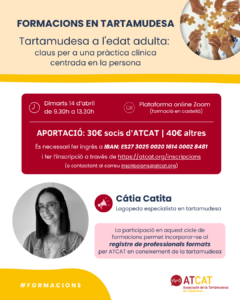 Presentem l’última formació en disfèmia que farem aquest curs 2025-26. En aquests cas, és un tema especial per nosaltres perquè es parlarà sobre població adulta. Sabem molt bé que aquesta etapa i aquest grup de pacients presenten reptes addicionals, per això és tant important poder tenir a professionals amb experiència. La formació anirà a càrrec […]
